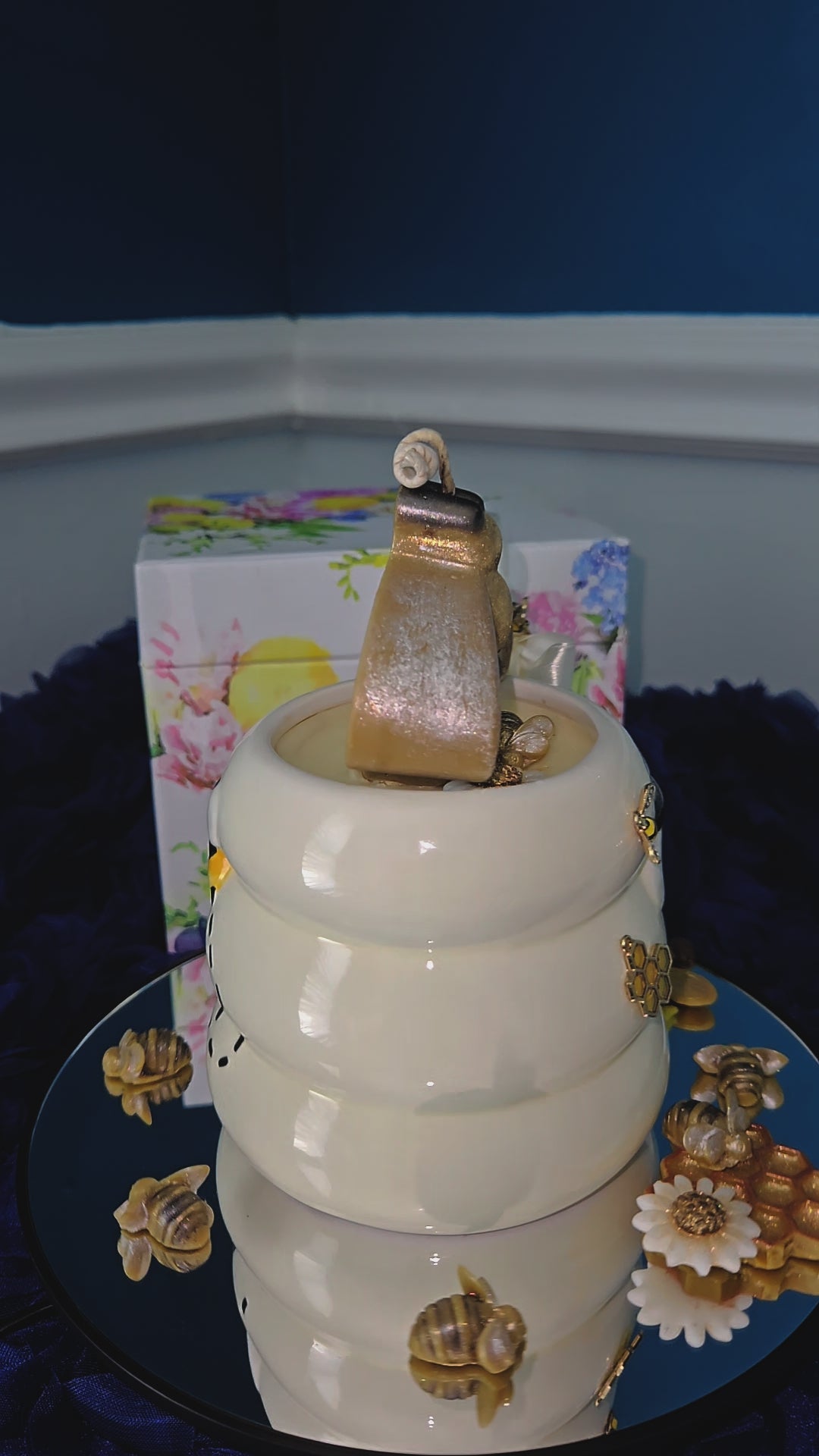 "Bee’s Enchanted Chalice"-"A golden cup brimming with sacred nectar, blessed by forest fairies and humming with the magic of bees. This scent swirls with honeyed amber, wildflower dew, and a whisper of ancient woodland spells."