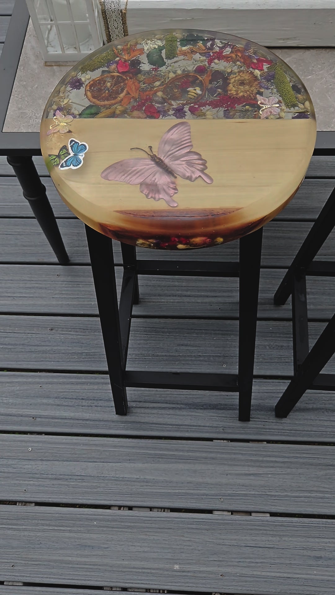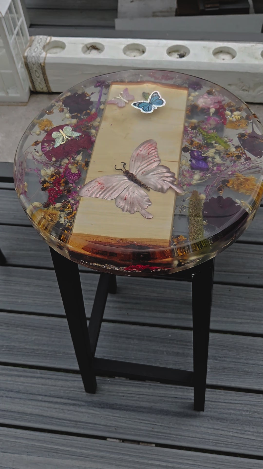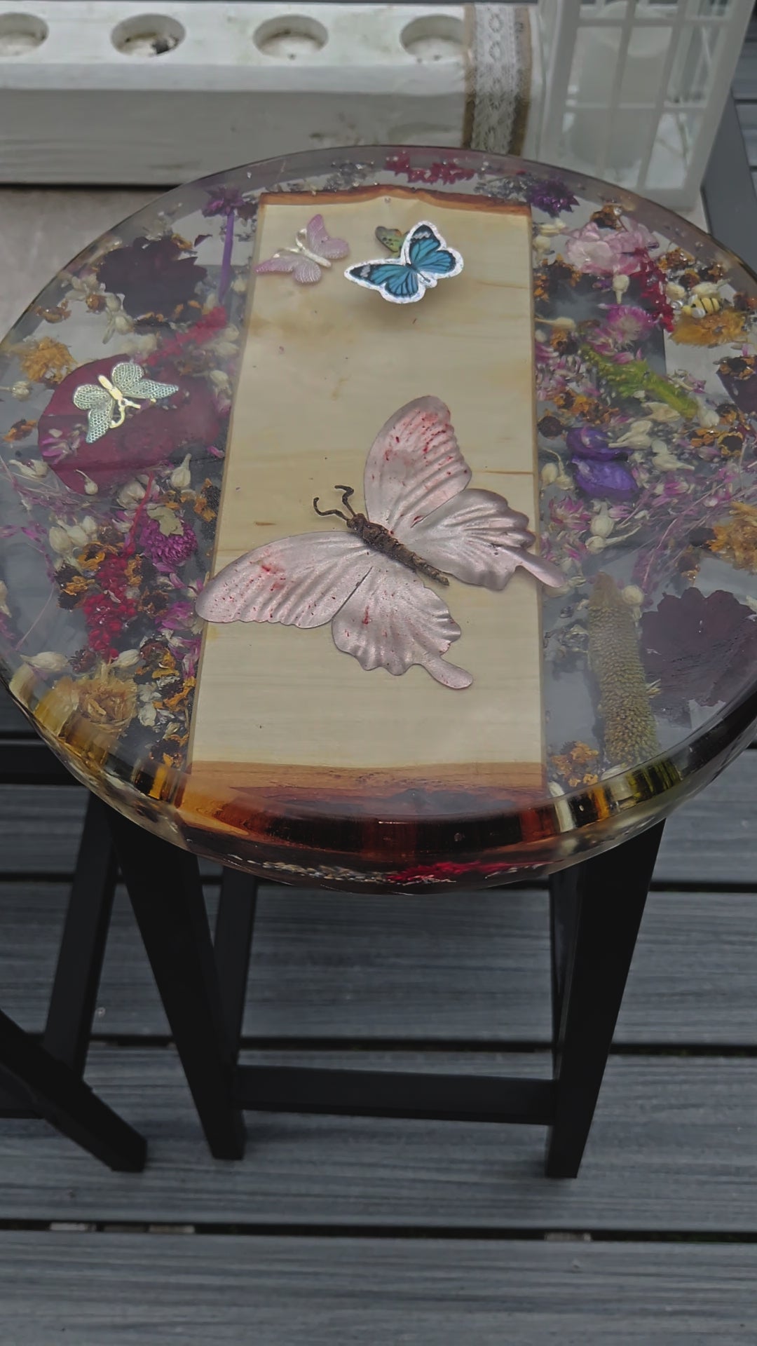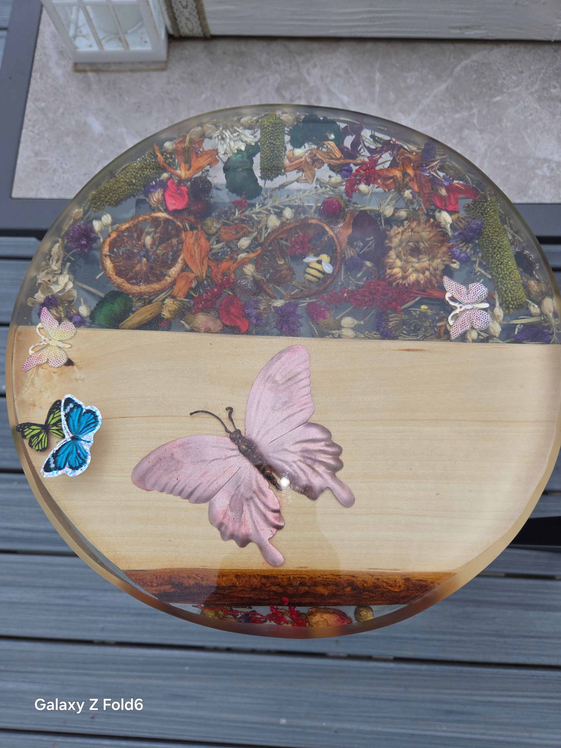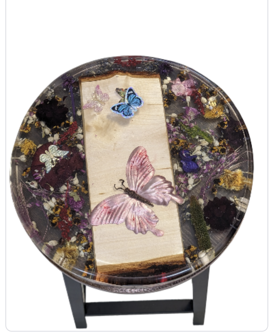 Furniture Finish | (Epoxy Top) With flowers & butterflies |